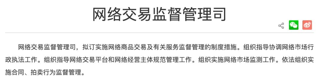 认证资料显示,“平台中国”是平台经济治理信息发布渠道,隶属于国家市场监管总局网络交易监督管理司。该司主要拟订实施网络商品交易及有关服务监督管理的制度措施。组织指导协调网络市场行政执法工作。组织指导网络交易平台和网络经营主体规范管理工作。组织实施网络市场监测工作。依法组织实施合同、拍卖行为监督管理。