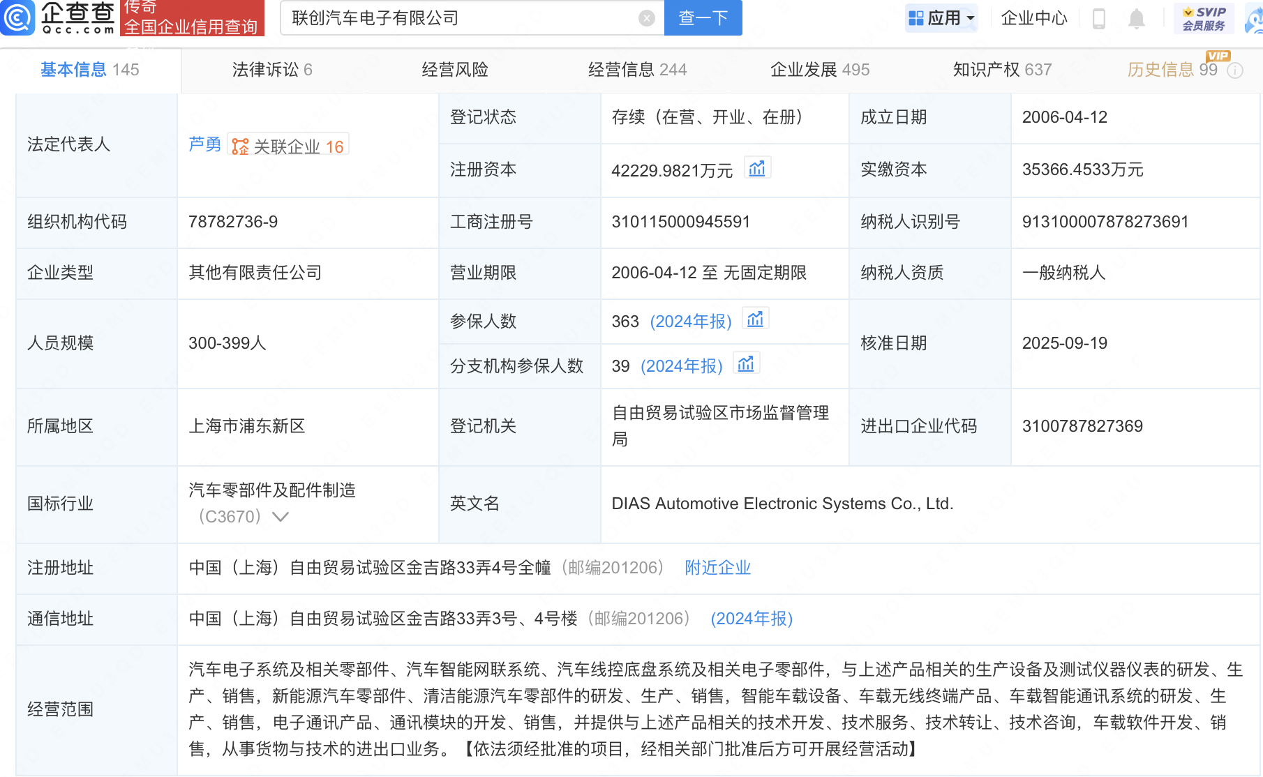 国家绿色发展基金、地平线机器人等入股联创汽车电子