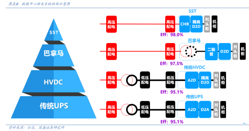 相比之下,中压整流器主导的HVDC技术路径凭借其成熟度和可靠性,在当前市场中占据主导地位,并正从传统的240V/336V方案向800V高压直流升级。