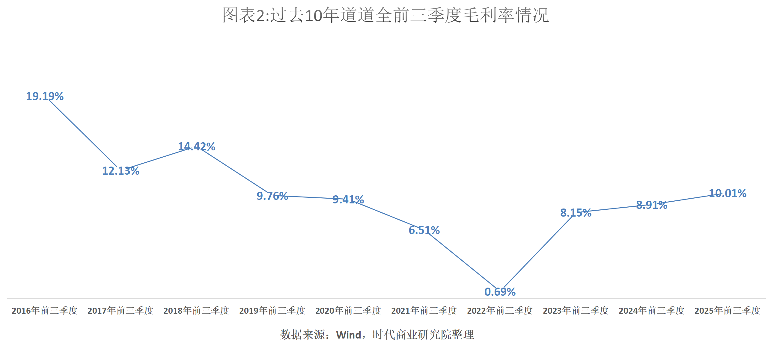 Wind数据显示,今年前三季度,道道全的毛利率为10.01%,较去年同期的8.91%提升了1.1个百分点,并达到自2019年以来同期最高水平。
