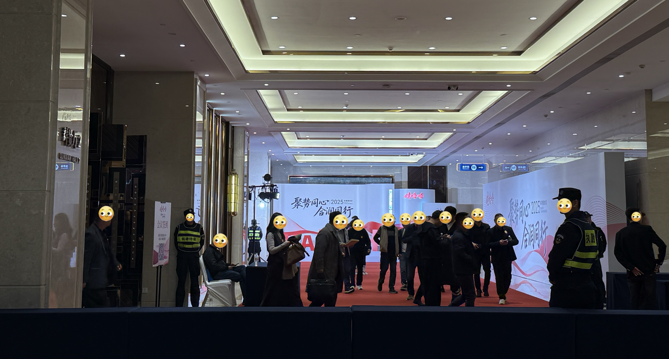 11月18日,娃哈哈2025年销售会议在绍兴富悦温德姆酒店召开。往年此时,酒店外总是飘扬着娃哈哈的宣传旗帜,报到处人声鼎沸。但今年,时代周报记者在现场看到的,是会场紧闭的大门与站在入口两侧的多名安保人员。会议于下午1点开始,当天早上10点,会议门口便有安保人员驻场。