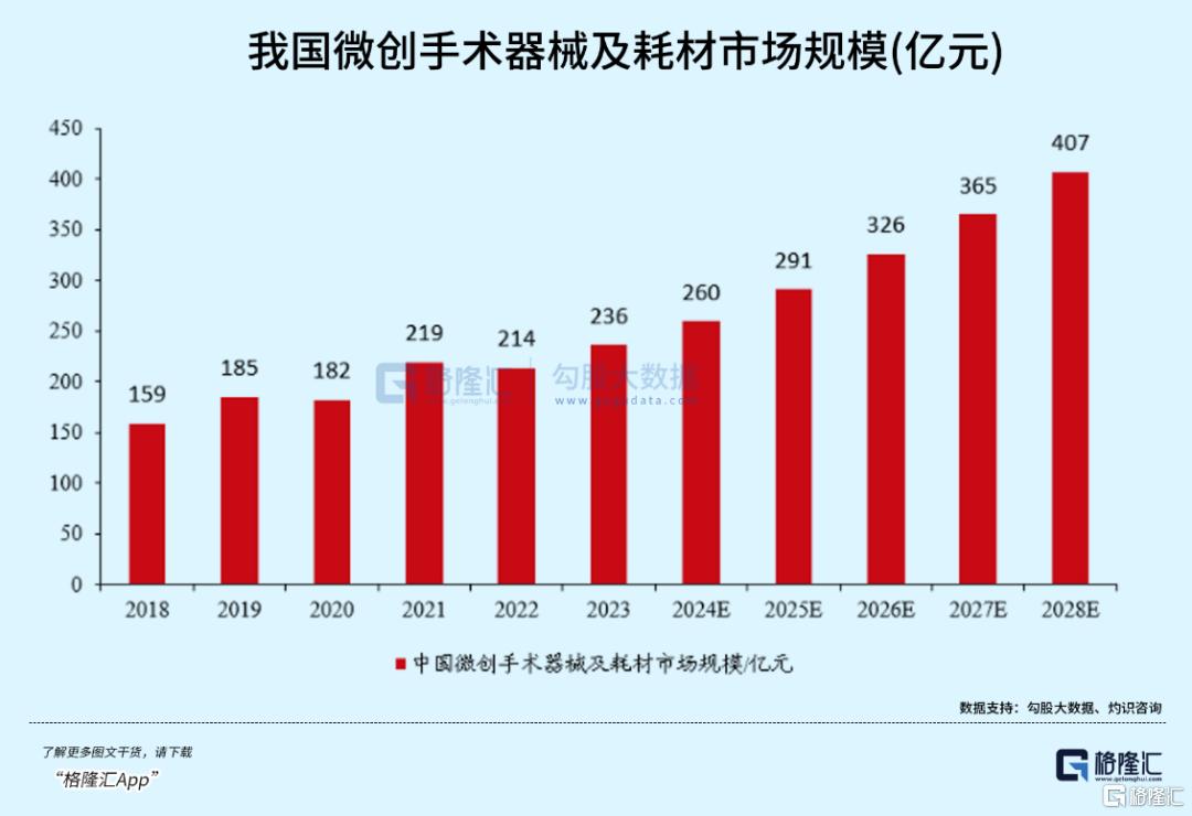 据灼识咨询数据,2023年我国微创手术器械及耗材市场规模达236亿元,随着微创外科手术量的持续增长,预计2023至2028年复合年增长率(CAGR)达11.5%,2028年我国微创手术器械及耗材市场规模将达到407亿元。