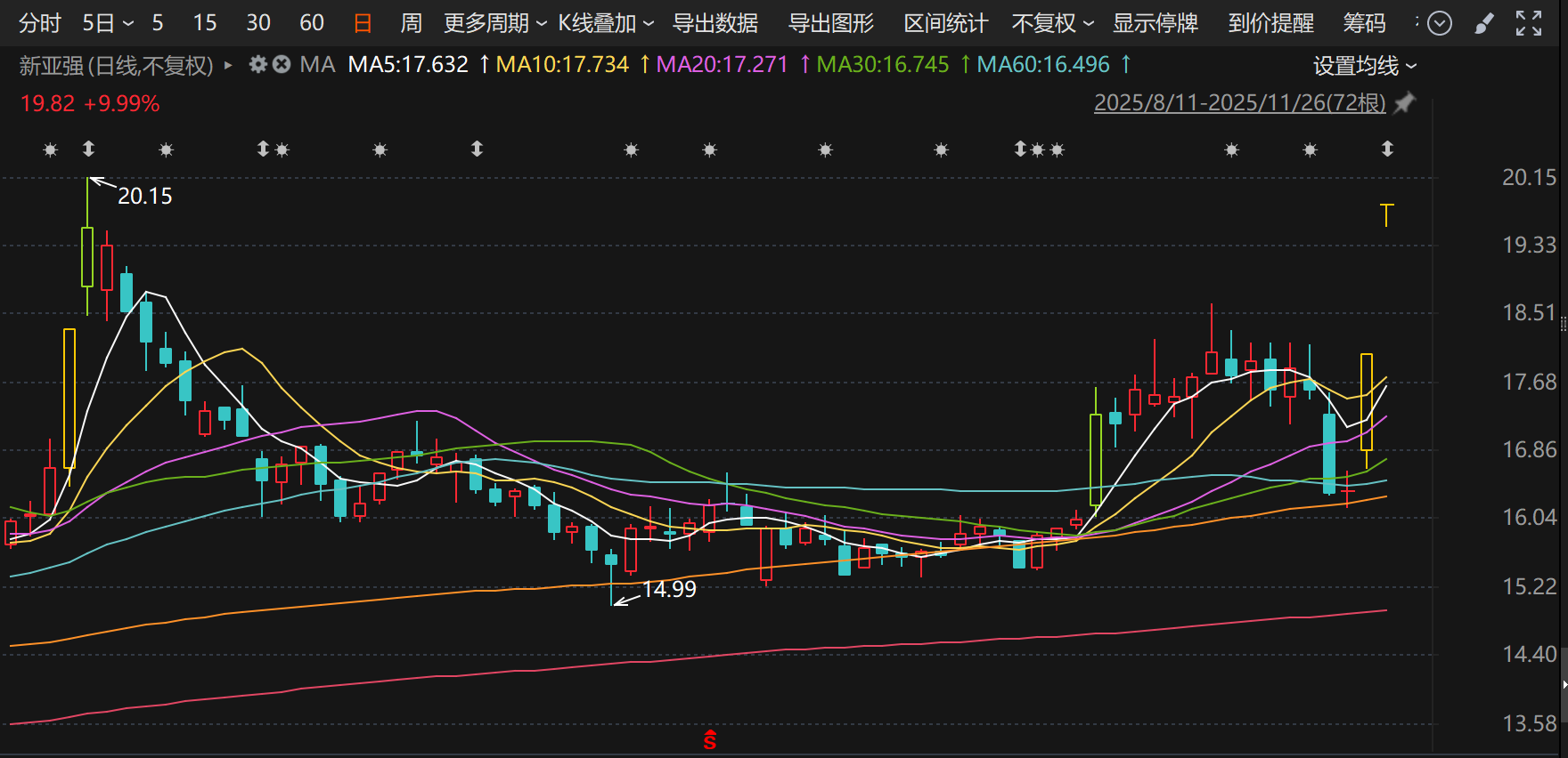 值得注意的是,股权转让协议公告前,新亚强股票11月25日开盘后迅速封涨停。
