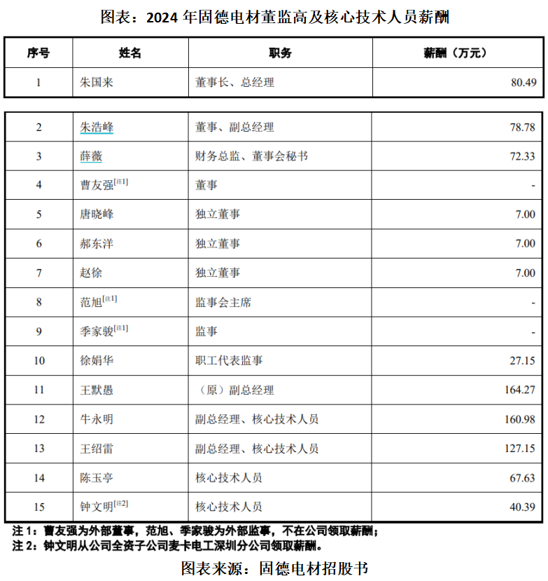 2022年11月—2025年10月,王默愚任固德电材新能源汽车业务高级总裁;2023年12月—2025年10月,其任该公司副总经理。而从薪酬来看,2024年王默愚的年薪达到164.27万元,是固德电材管理层中薪酬最高的高管。