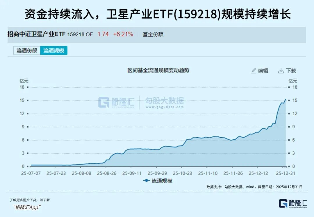 元旦回来赛道延续攻势,卫星产业ETF(159218)跟踪的标的指数大涨3.78%,盘中资金抢筹积极,净流入量直接创下单日新高。