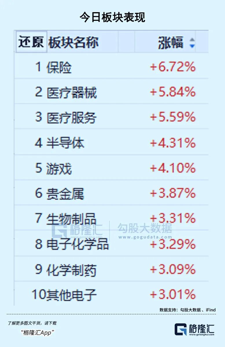 板块题材上,脑机接口、保险、半导体、商业航天、创新药、游戏、有色金属板块涨幅居前;海南自贸区、旅游及酒店、银行、跨境支付、猪肉板块跌幅居前。