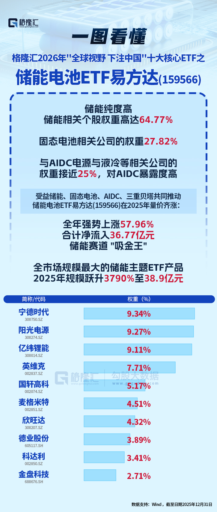 正因如此,格隆汇将储能电池ETF易方达(159566)纳入2026年“全球视野,下注中国”十大核心ETF,成为捕捉行业红利的优质标的。