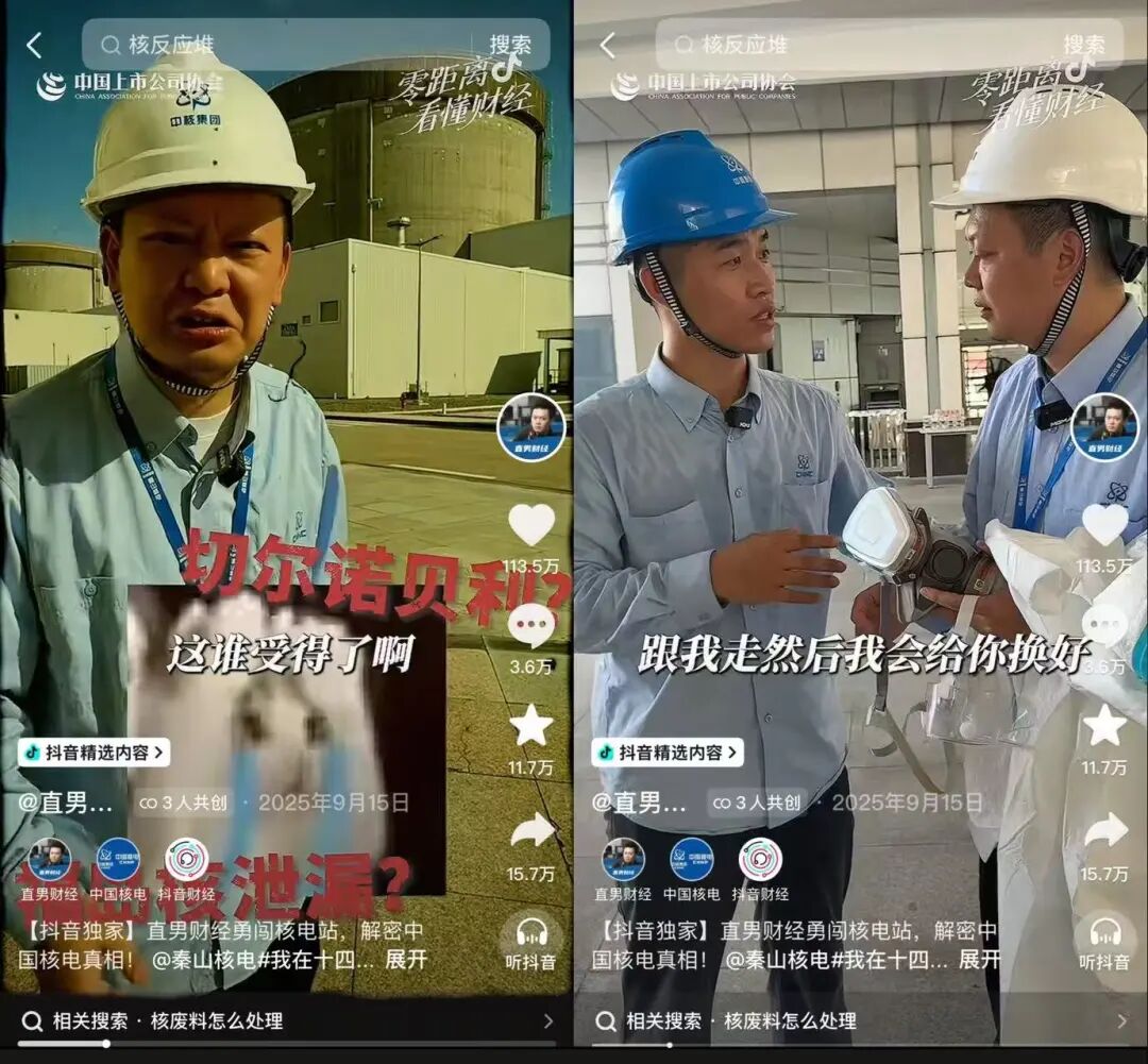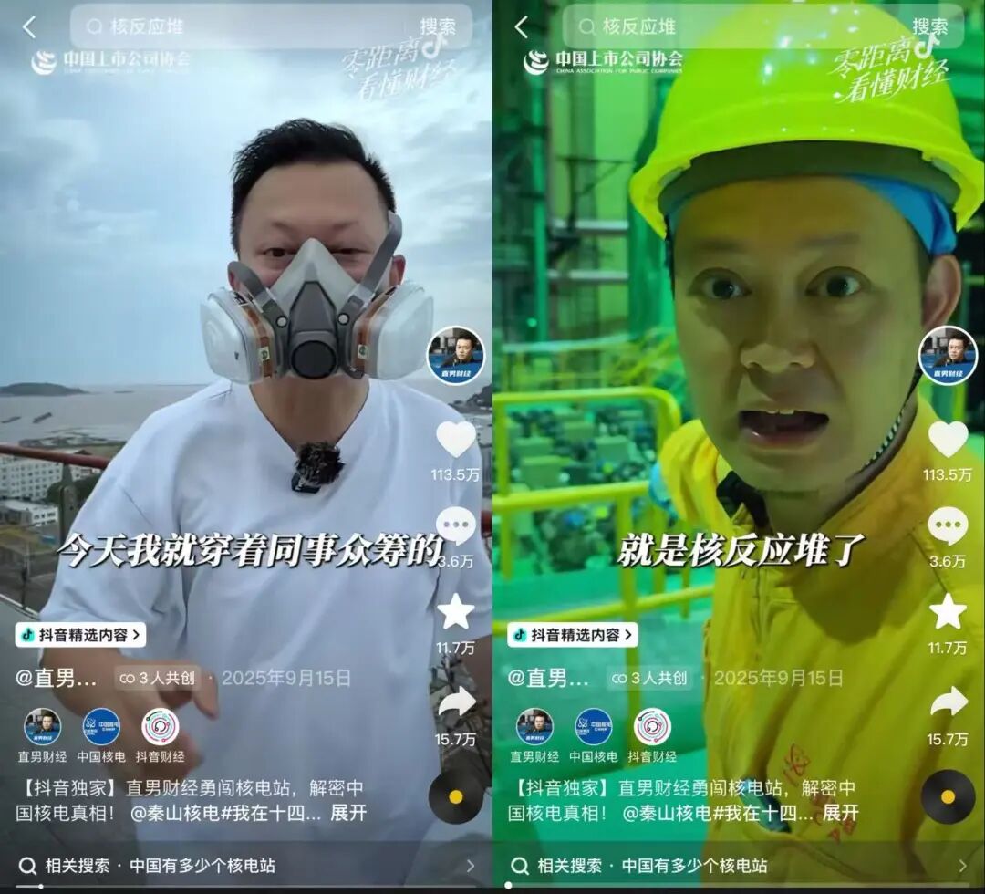 “我现在人在浙江嘉兴,身后就是中国‘核电长子’中国核电旗下的秦山核电”。2025年9月,作为首个探访国内唯一商用重水核反应堆的自媒体博主,@直男财经 勇闯秦山核电站的视频彻底火了。