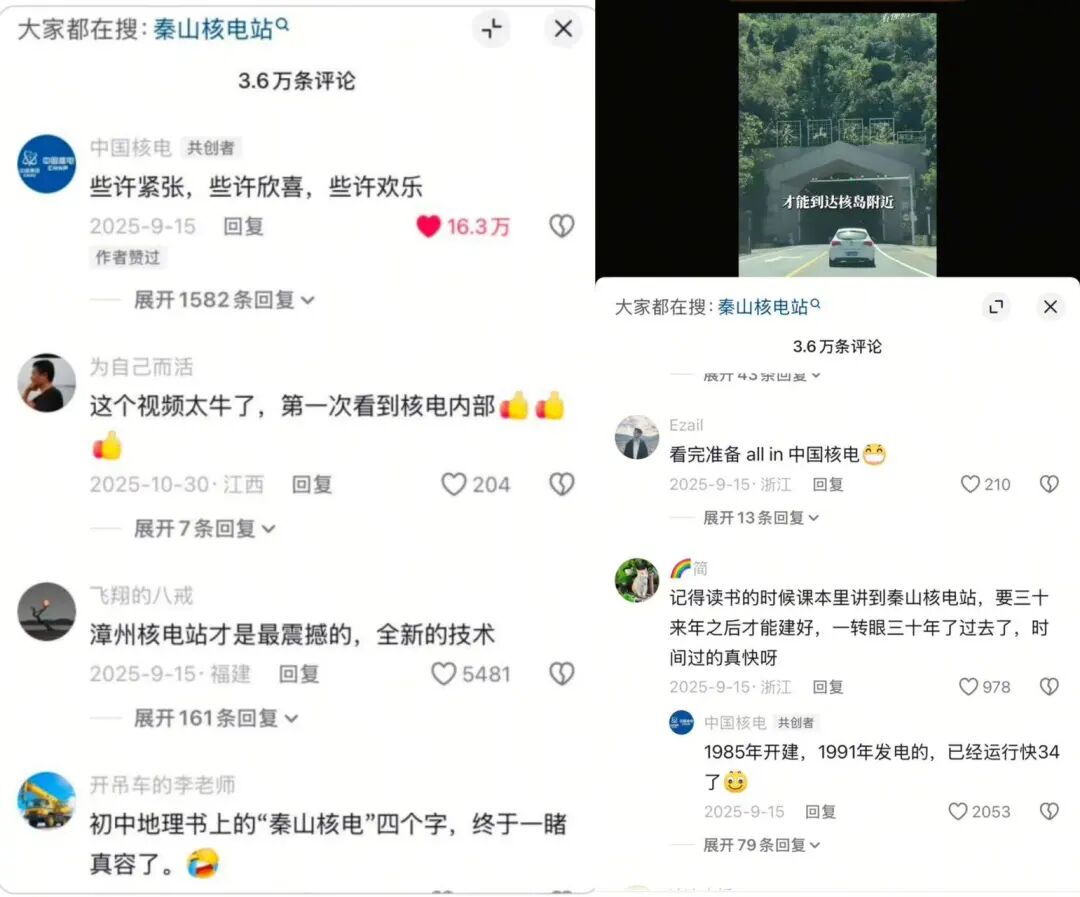 抽象的大国重器就这样被具象化了。这条视频评论区的网友们说:“初中地理书上的‘秦山核电’四个字,终于一睹真容了”“第一次看到核电内部,挺震撼的”。