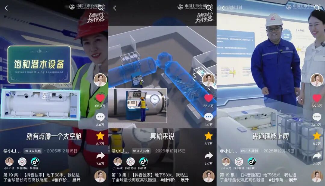 “地下太空舱能上网吗?”“讲道理是能上网,他们会看一些报纸、杂志,还有书。”这些生活化的解读和对话里,观众一边看到了“饱和潜水”这一技术创新在高压换刀中的应用,一边能想象“地下太空舱”的真实生活。