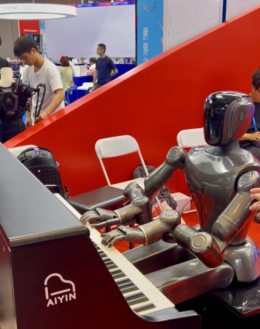 深圳文博会上弹琴的机器人(时代周报王晨婷/摄)