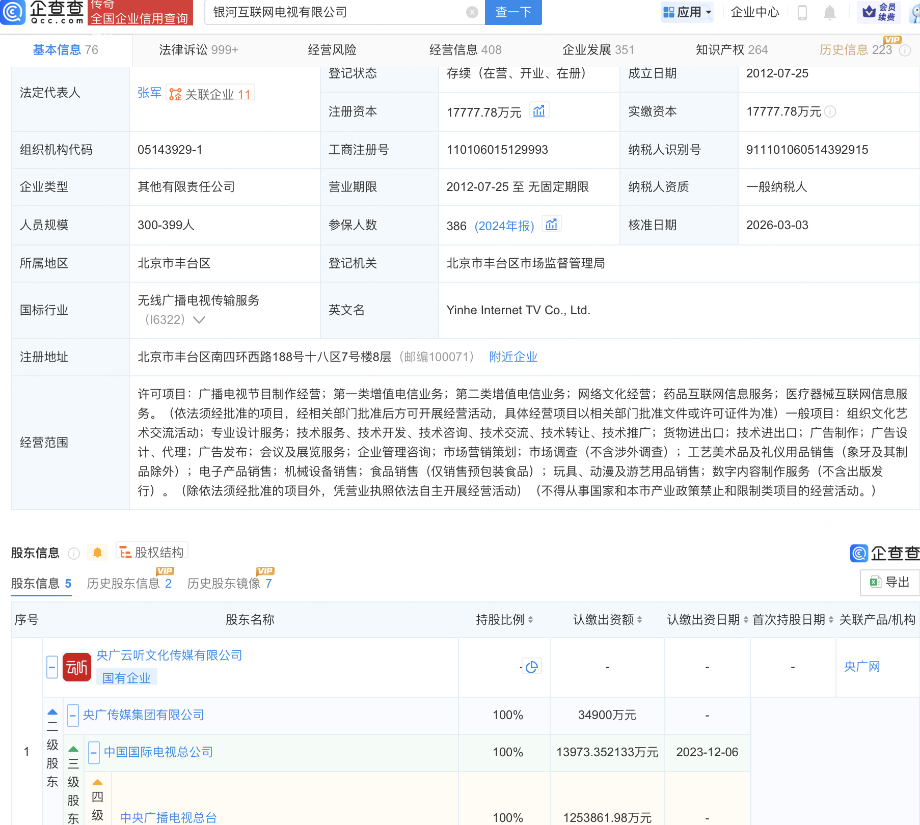 企查查APP显示,近日,银河互联网电视有限公司发生工商变更,鹏博士创云(北京)科技有限公司退出股东行列,新增小米关联公司瀚星创业投资有限公司为股东。企查查信息显示,该公司成立于2012年,经营范围包含:广播电视节目制作经营;第一类增值电信业务;第二类增值电信业务;网络文化经营等。公开信息显示,银河互联网电视由中央广播电视总台、北京爱奇艺科技有限公司等共同发起,公司持有互联网电视集成服务和内容服务双牌照。