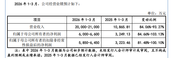 百英生物的业绩相当亮眼:2025年营收6.08亿元,同比增长51.16%;归母净利润2.16亿元,同比增长74.41%。进入2026年,势头不减——一季度预计营收2亿至2.1亿元,同比增长84.06%至93.27%;归母净利润预计6000万至6600万元,同比增长84.66%至103.13%。