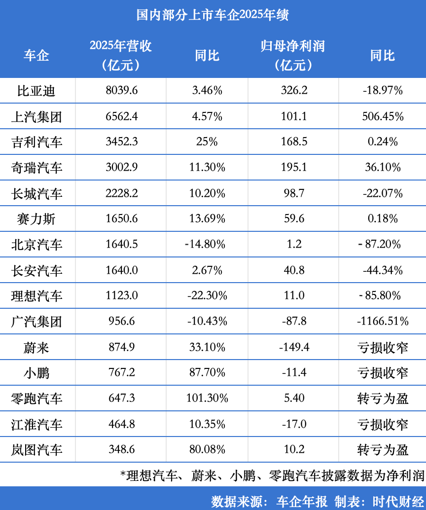 2025年车企年报盘点:营收超3000亿达4家,多家车企增收不增利,海外市场将成盈利新增长点?
