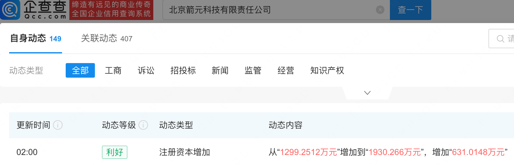 企查查APP显示,近日,北京箭元科技有限责任公司发生工商变更,注册资本由1299.25万元增至1930.27万元。企查查信息显示,该公司成立于2019年,法定代表人为魏一,经营范围包含:运载火箭及其他航天器、航空航天的技术开发、技术转让、技术咨询、技术服务、技术检测等。