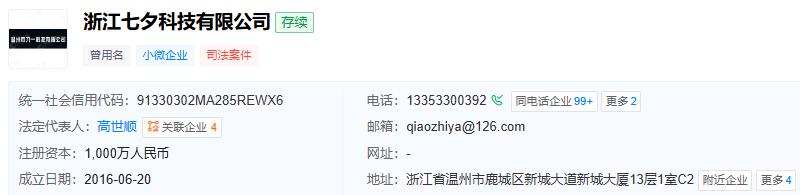 据天眼查APP显示,双11品牌隶属浙江七夕科技有限公司,公司成立于2016年,位于浙江省温州市,是一家以从事零售业为主的企业,在避孕套领域已经深耕了很久。