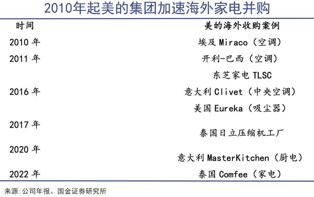 美的和泰国的联系源于一次收购。2016年,美的收购东芝白电(TLSC),获得进入东南亚的渠道与品牌资源,并在三年内实现扭亏为盈。2020年以来,又通过收购意大利 MasterKitchen、泰国Comfee进一步完善品牌矩阵。