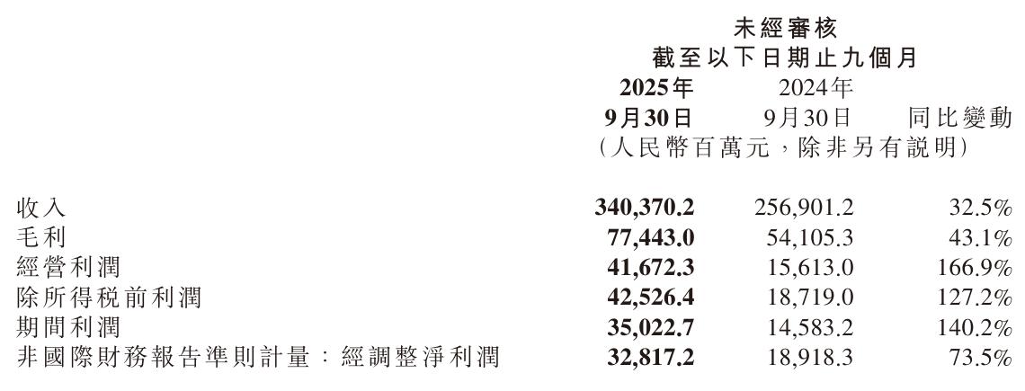 2025年第三季度,小米集团实现净利润122.57亿元,非国际财务报告准则下的经调整净利润为113.11亿元,同比增长80.9%,并创下单季度盈利新高;前三季度的经调整净利润亦实现了73.5%的显著增长,来到328.17亿元。