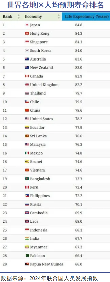人均预期寿命是衡量一个国家健康和医疗条件的重要指标,目前日韩澳等国都已超过80岁,排在全球前列。我国居民去年预期寿命已提高到近79岁,而这一数字在建国前只有35岁。