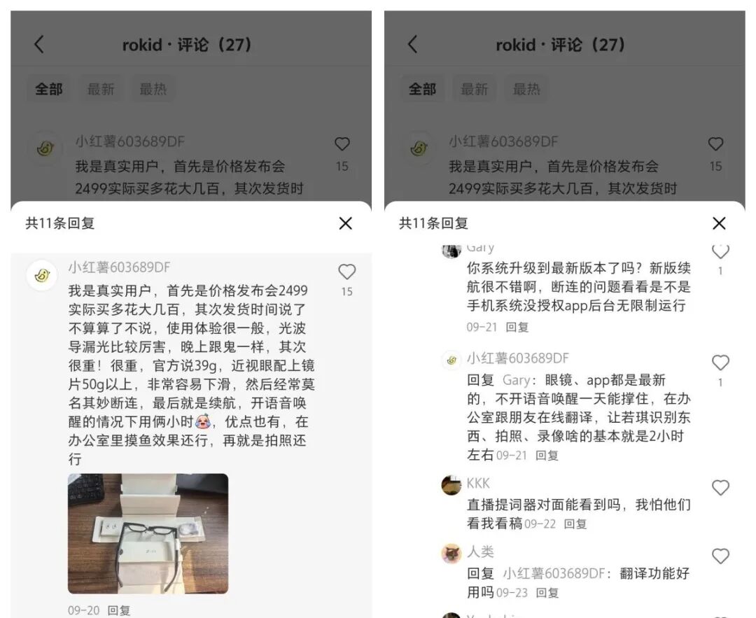 续航更是成了行业的集体硬伤。有Rokid用户在社交平台反馈,“开语音唤醒的情况下用两小时”,这与官方宣传的全天候使用相去甚远。