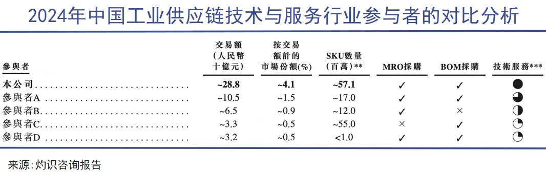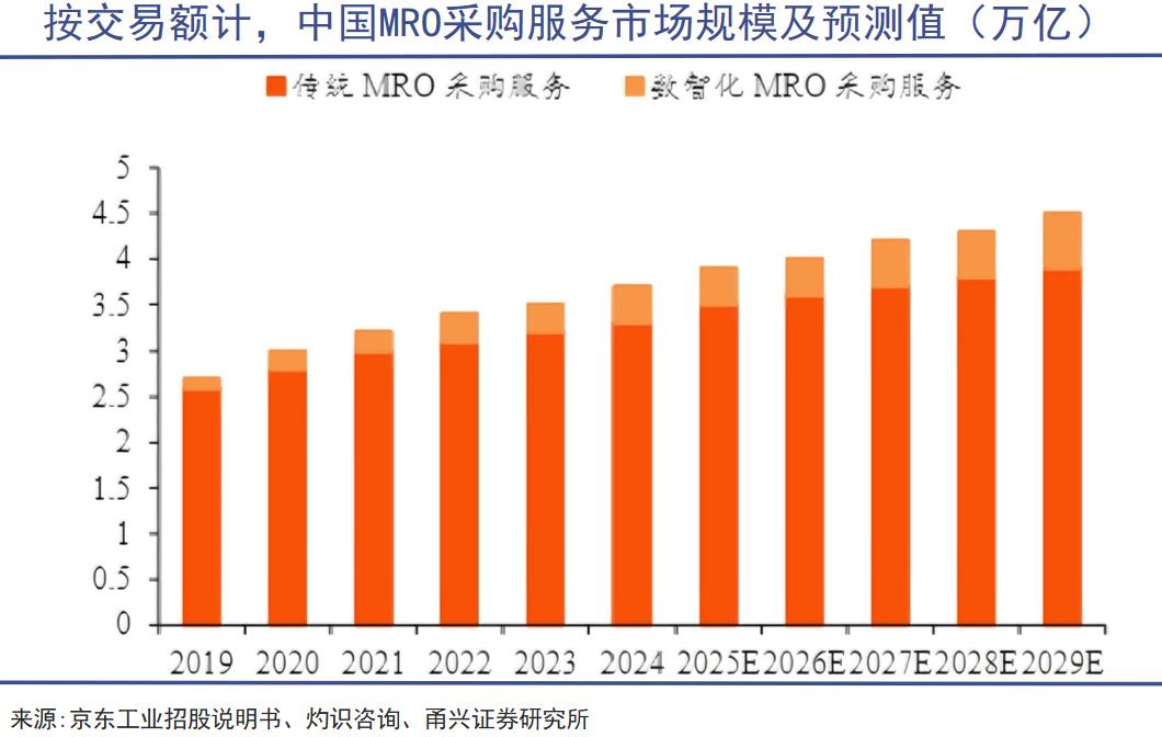 目前传统MRO采购服务的市场基数更大,近年来复合增速较为平稳(5.1%)并且趋势下降。