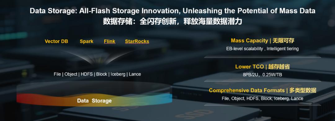 但数据与传统资源不同,其产生、存储、流通、利用全依赖数字化技术,“资产化”更离不开成熟技术体系支撑。《研究报告》以“加速分布式存储全闪化,构建高质量AI数据基础设施”为核心,已经明确了相关技术体系,其中三大技术更是数据“资产化”的关键。