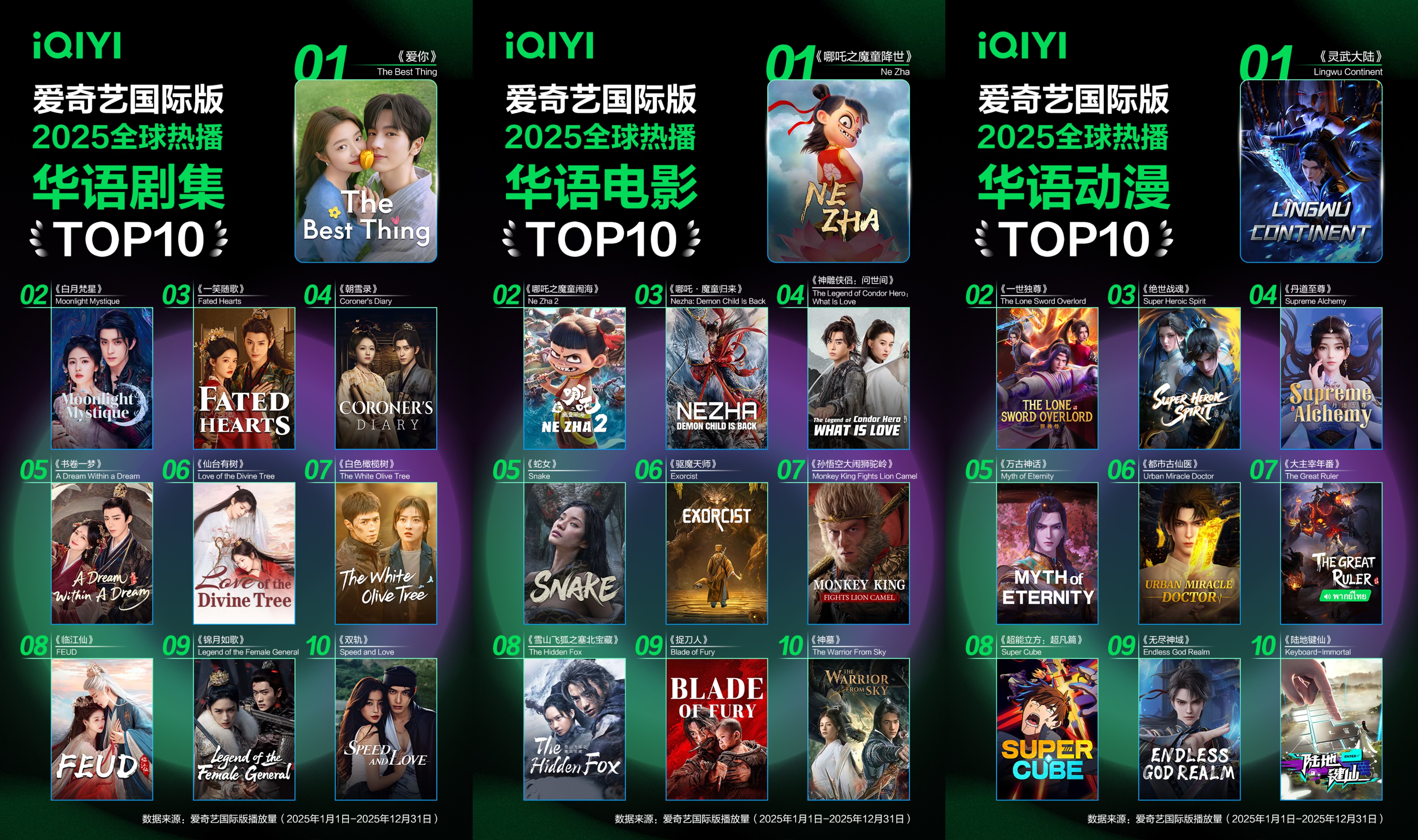 1月20日,爱奇艺国际版正式发布2025年度内容热播榜,平台全年内容播放量同比增长114.5%,创下历史新高。