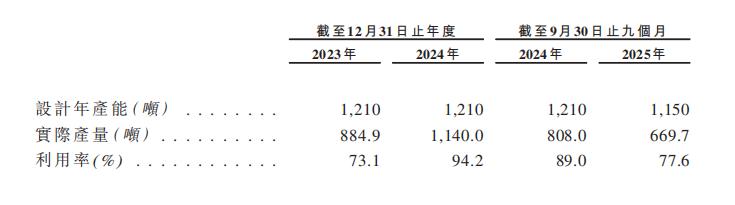 从其招股书看,半亩花田的库存与产能更像是在形成新的挑战。截至2023年12月31日、2024年12月31日及2025年9月30日,存货总额分别为0.61亿元、1.32亿元、1.86亿元,同期存货净额分别为0.53亿元、1.15亿元、1.64亿元。与此同时,济南原材料加工厂2025年前9个月年化产能约1150吨,实际产量669.7吨,年化产能利用率为77.6%,较2024年的94.2%出现明显下滑。