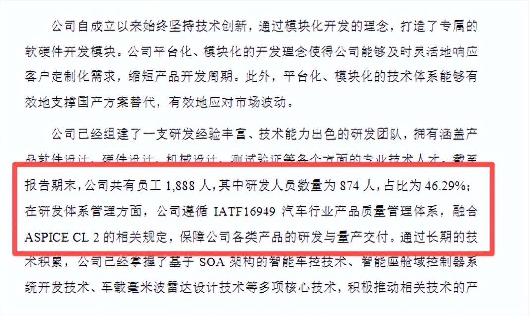 招股书显示,截至报告期末,埃泰克员工总数1888人,其中研发人员874人,占比高达46.29%。上述比例甚至超过了行业龙头德赛西威2024年45.98%的研发人员占比,远高于华阳集团33.52%的行业平均水平。