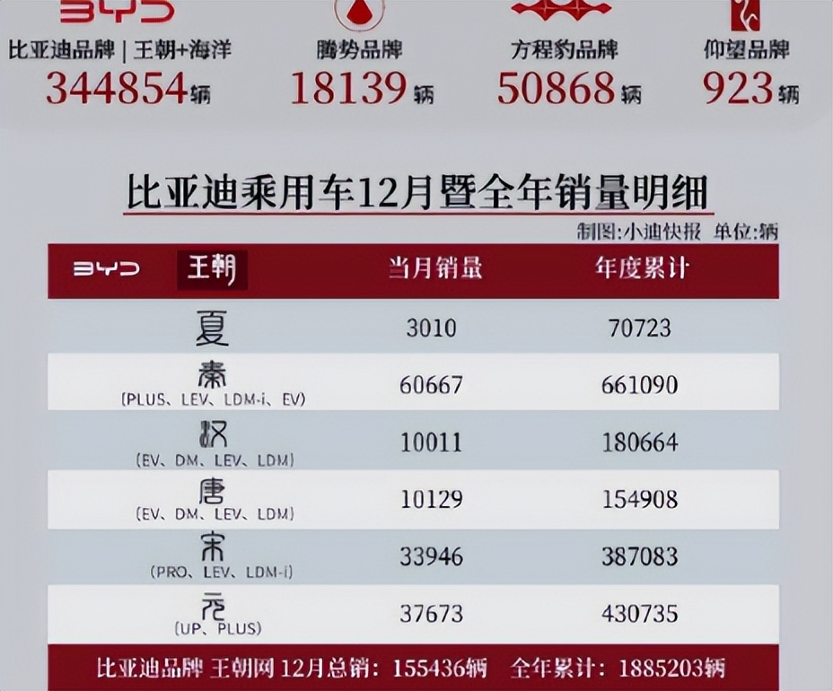 汉系列从2024年12月月销34071辆,下跌一万出头。唐系列从2024年12月16255,下降到2025年12月一万出头。2025年4月新上市的汉唐L系列高开低走,上市后快速下滑,未能承接老款销量