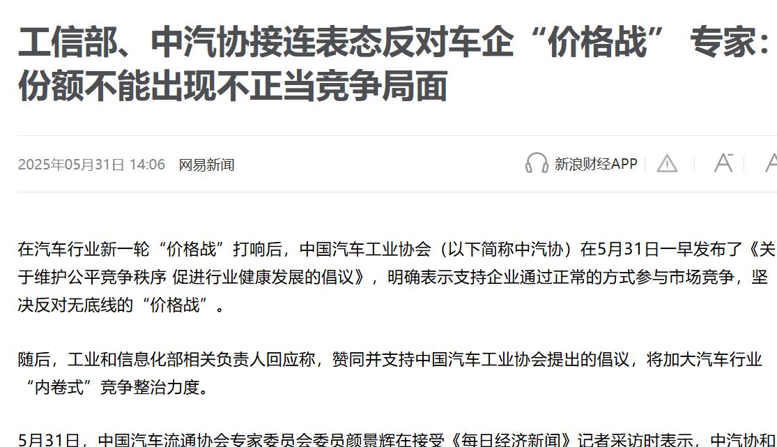 此举必然遭到国内其他竞争对手的强烈反对,各大汽车厂商通过各种途径群起而攻,最终还触发中汽协、工信部联合警示,叫停恶性内卷。