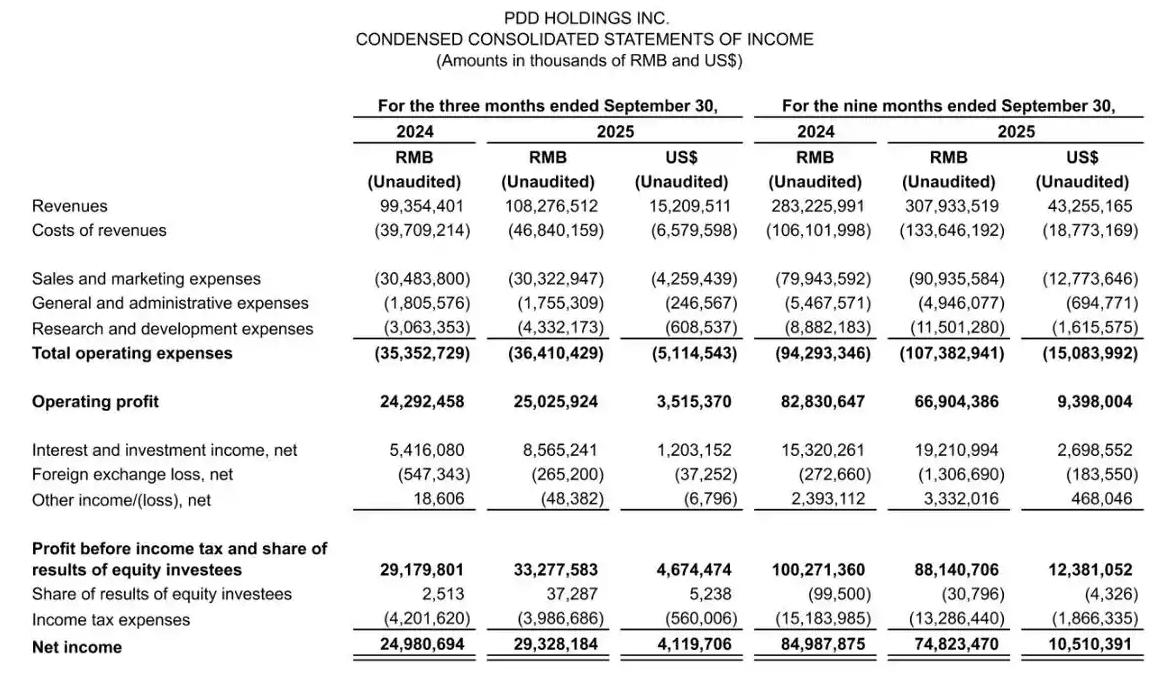 最新财报显示,拼多多2025年第三季度的收入同比增长9.0%至1082.77亿元,突破1000亿元关口。尽管仍保持正增长,但与此前连续的双位数高增长相比已明显放缓。