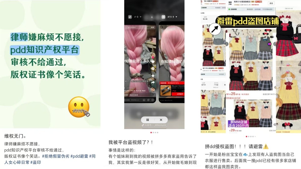 图书领域的盗版问题,仅仅是拼多多平台治理疏漏的冰山一角。在服饰、美妆、家居、食品等多个消费领域,类似侵权、伪劣、虚假宣传等问题依然频发,各大社交平台与投诉渠道上也不断有用户反映自己维权受阻的情况。