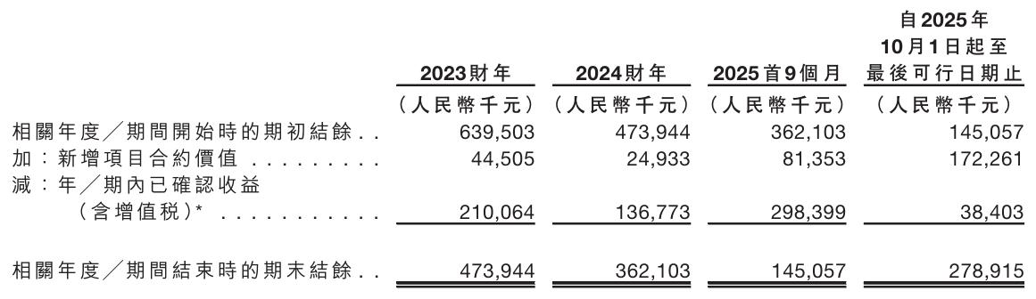 就目前在手订单来看,从2025年10月到最后实际可行日期,拓必达手中仍有128个未完项目,期末结余约2.79亿元,随着资源短缺情况的逐步缓解,该公司在新项目拓展与获取能力上已显露出修复迹象。