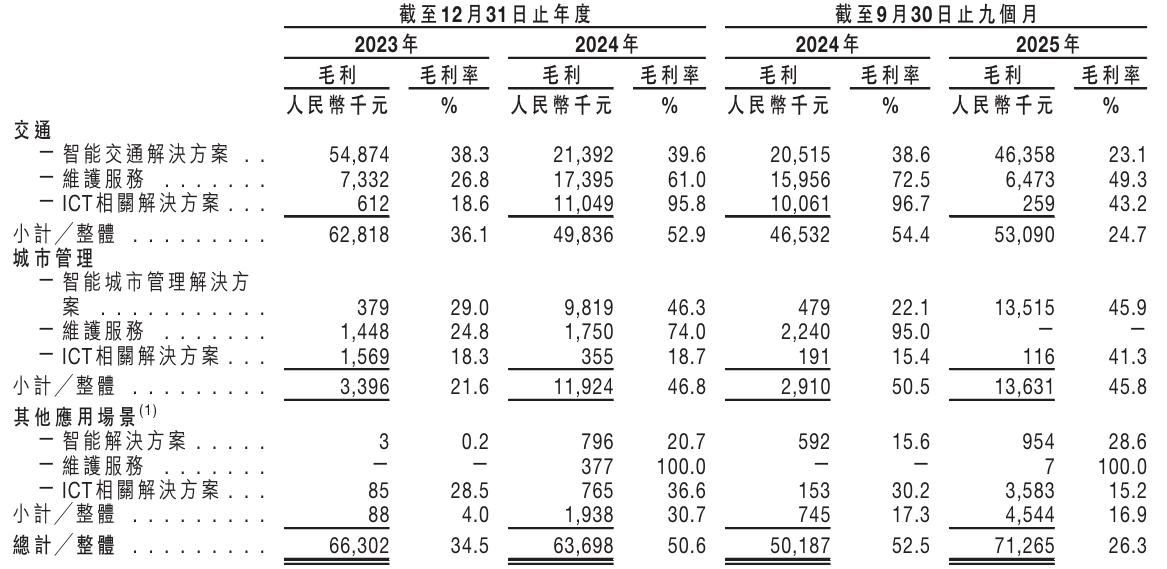 按照场景划分可知,拓必达的毛利主要来源于提供智能解决方案,尤其交通领域的智能解决方案。但该场景的收入却由2024年前三季度的54.4%降至2025年前三季度的24.7%,高达29.7%的降幅无异于腰斩。