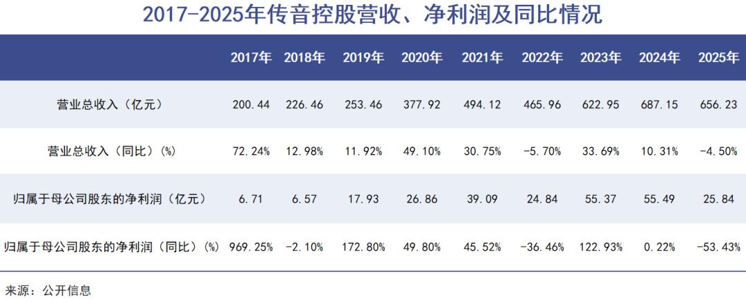 进入2025年,情况变得更加糟糕,传音控股的业绩直接陷入负增长,并即将迎来上市以来最差年报。