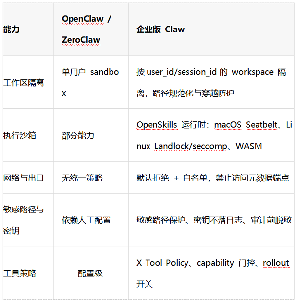 企业环境的Claw,与OpenClaw的区别在于: