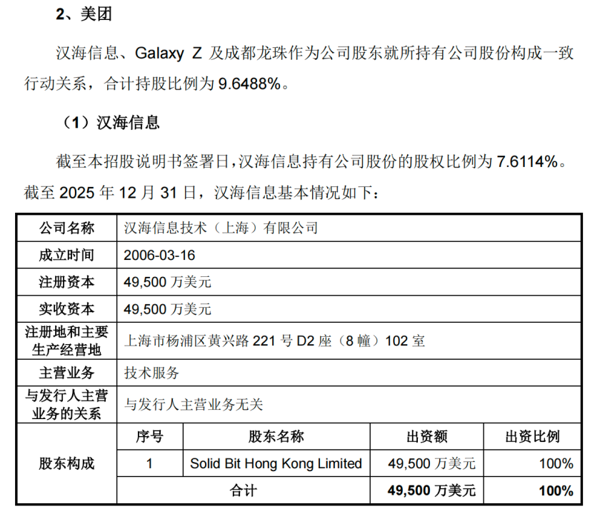 (1)美团系:通过汉海信息、成都龙珠等合计持股,是第二大股东。