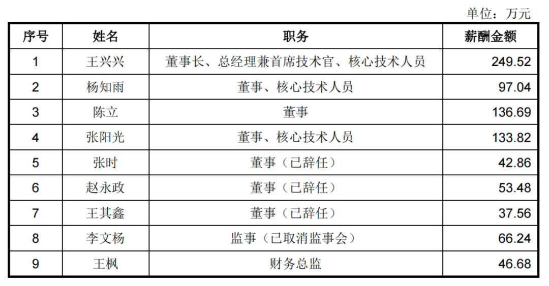 而在这份名单里,工资仅次于王兴兴的,分别是陈立(董事,136.69万元)和张阳光(董事、核心技术人员,133.82万元)。
