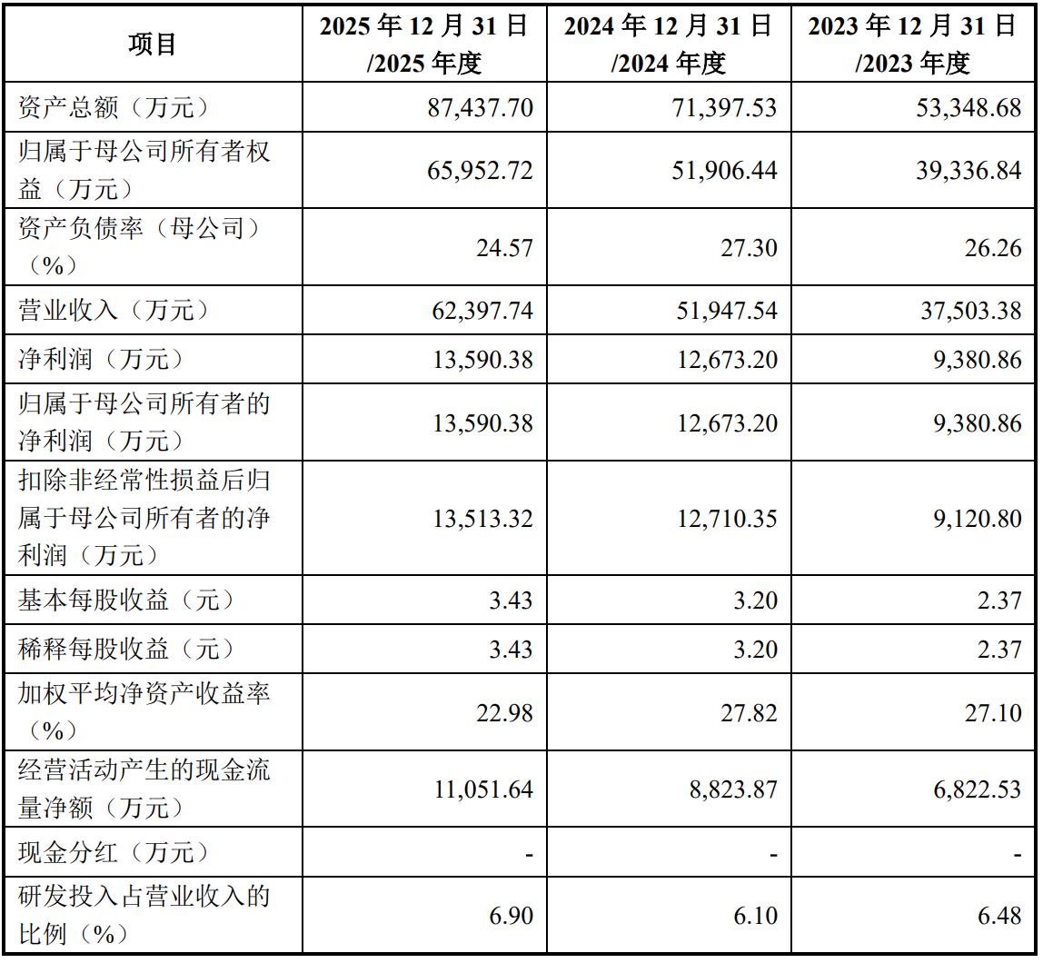 不难看出,思索技术2025年营收同比增长20.12%,首次突破6亿元大关。同年,该公司的净利润约为1.36亿元,同比增长7.24%。虽然营收和净利润均为历史新高,但增速明显放缓。